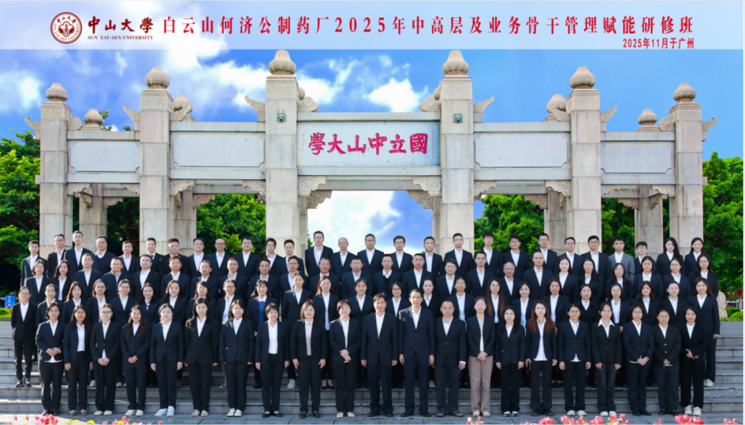 以“变”谋新,以学赋能,强化人才梯队建设,激发老字号创新活力。2025年11月23日至25日,白云山何济公制药厂在中山大学成功举办了“2025年中高层管理人员及业务骨干管理赋能研修班”,党委书记、厂长、管委会主任孟君等全体中高层管理干部及各部门业务骨干人员近100人参加培训。本次研修班立足于企业的核心价值观与发展战略,旨在提升管理人员的战略视野、执行力和创新管理能力,以应对医药行业的新挑战。