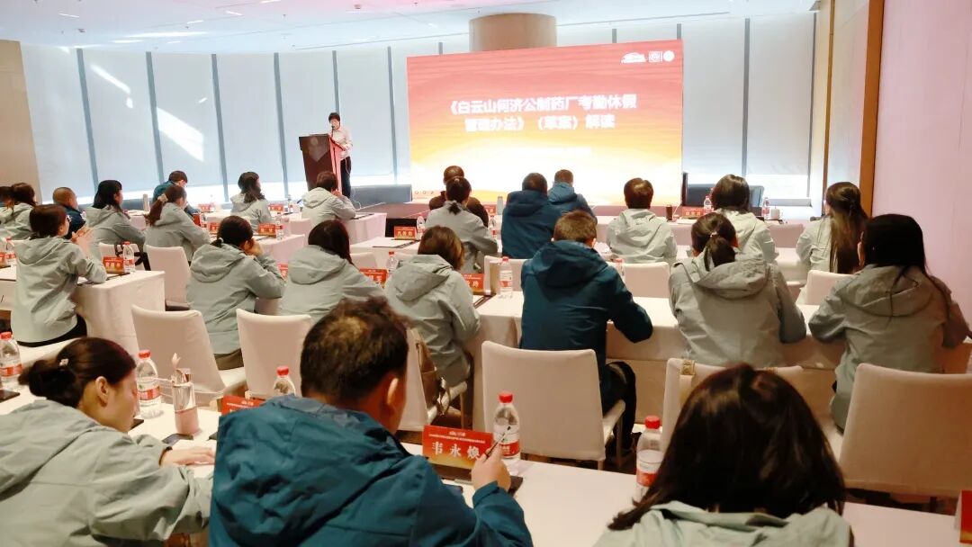 纪委书记许妍作开班动员 培训第二站以现场会议形式举行。许妍作开班动员讲话,强调工会干部与职工代表是连接党组织、企业与职工的关键纽带,本次培训旨在筑牢沟通桥梁、激活履职载体,推动工会工作提质增效。会上,她对参培人员提出三点要求:一要铸牢政治忠诚,当好“领航员”;二要锤炼履职本领,当好“勤务员”;三要坚持知行合一,当好“实干家”,切实将培训成果转化为服务企业高质量发展的实际成效。 党委副书记、工会主席廖炎辉传达全会精神 廖炎辉在会上专题传达学习党的二十届四中全会精神。他指出,全会为“十五五”时期发展指明方向,基层职工需将全会精神转化为干事创业的动力,并从四方面工作要求:一是深学细悟,把握高质量发展核心要义;二是对标对表,明晰实践路径;三是担当作为,争做先锋表率;四是强化职工代表作用,凝聚发展合力。他表示,工会将不断优化工作模式,创新方式方法,以建设“和谐家园、和谐文化”为重点,强化党建引领,广泛凝聚干部职工奋进“十五五”、建功新时代的磅礴精神力量,为助推何济公高质量发展贡献工会组织的独特力量。 行政副总监邓高洁解读企业文化规划 行政副总监邓高洁围绕“十五五”企业文化建设规划(征求意见稿)征求职工代表意见及建议,从“关于企业文化建设情况的调研报告”“企业文化建设‘十五五’规划”“企业文化建设‘十五五’规划落地实施方案”三大要点对规划进行介绍,涵盖文化建设的成效、问题与实施路径等方面,并表示,文化兴则企业兴,文化强则企业强,白云山何济公的文化建设要以规划为纲领,赓续“济世为公”品牌精神与“向秀丽精神”红色血脉,借助数字赋能激发文化创新活力。 人力资源部副总监谈世君解读管理办法 人力资源部副总监谈世君对《白云山何济公制药厂考勤休假管理办法(草案)》进行了详细解读,并经大会职工代表审议投票表决,该草案获得通过。 大会现场及审议表决 罗俊池老师授课提升民主管理能力 培训特邀广东省总工会干部学校教师罗俊池,以“开展企业民主管理 构建和谐劳动关系”为主题授课。他围绕新时代民主管理要求、核心内涵、工作模块及职代会流程等内容,结合《企业民主管理规定》作深入解读,为畅通职工诉求渠道、构建和谐劳动关系提供实践指导。参培人员均表示授课内容务实管用,深化了对工会工作的理解。
