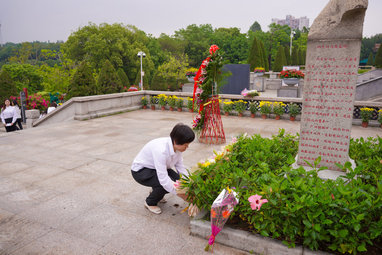 全体人员依次走向向秀丽烈士塑像,俯身献上手中的菊花,并绕行烈士墓一周,驻足瞻仰。菊花素洁,寄托着对英烈的深切缅怀;步履轻缓,丈量着薪火相传的漫漫征途。