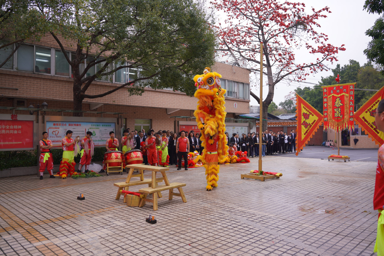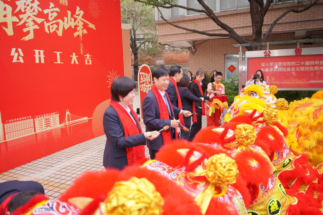 在欢腾喜庆的锣鼓声中,醒狮表演将开工仪式推向高潮。领导班子成员一同为醒狮点睛,金笔点额、醒狮腾跃,醒狮团队献上精彩的采青表演,雄狮时而昂首阔步、时而腾挪跳跃,展现出昂扬向上的精神风貌和勇往直前的奋斗姿态,为白云山何济公新一年发展鼓劲助威、纳福添彩。