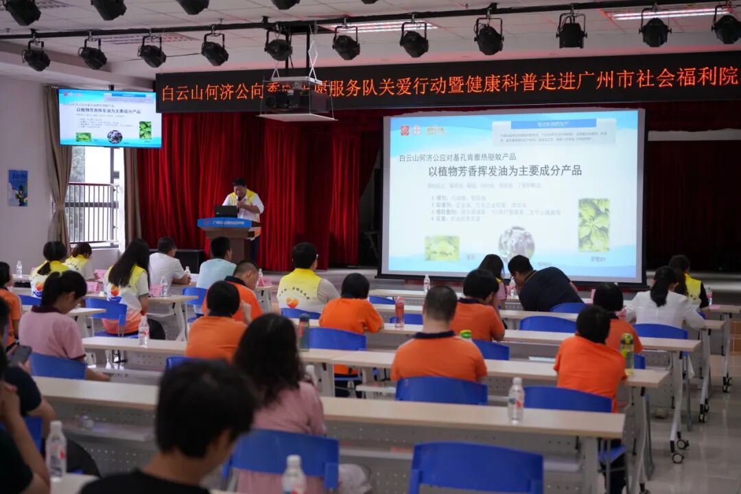 在基孔肯雅热防控的关键时期,为弘扬向秀丽精神,践行国企社会责任。8月15日上午,白云山何济公制药厂向秀丽志愿服务队走进广州市第二福利院开展预防“两热”关爱活动,为福利院特殊群体送去切实的健康守护与暖心陪伴。广州市社会福利院院长杨杰文、副院长袁德润、白云山何济公副厂长谢华金、福利院工作人员以及向秀丽志愿服务队等参加活动。