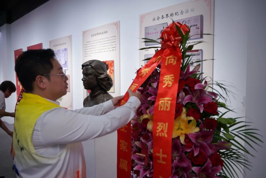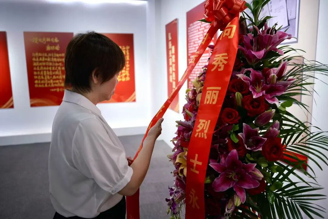 活动在庄严的国歌声中拉开序幕,全体人员肃穆而立,齐声高唱国歌,在中国人民抗日战争暨世界反法西斯战争胜利80周年之际,致敬舍生救国的抗日先烈。 全体人员在向秀丽烈士塑像前行垂首默哀礼并三鞠躬,随后向向秀丽烈士塑像敬献花篮,向秀丽烈士家属崔靖与纪委书记许妍上前整理花篮缎带,简朴庄重的仪式是对向秀丽烈士的尊重与怀念,更是对烈士英魂的深切追思。