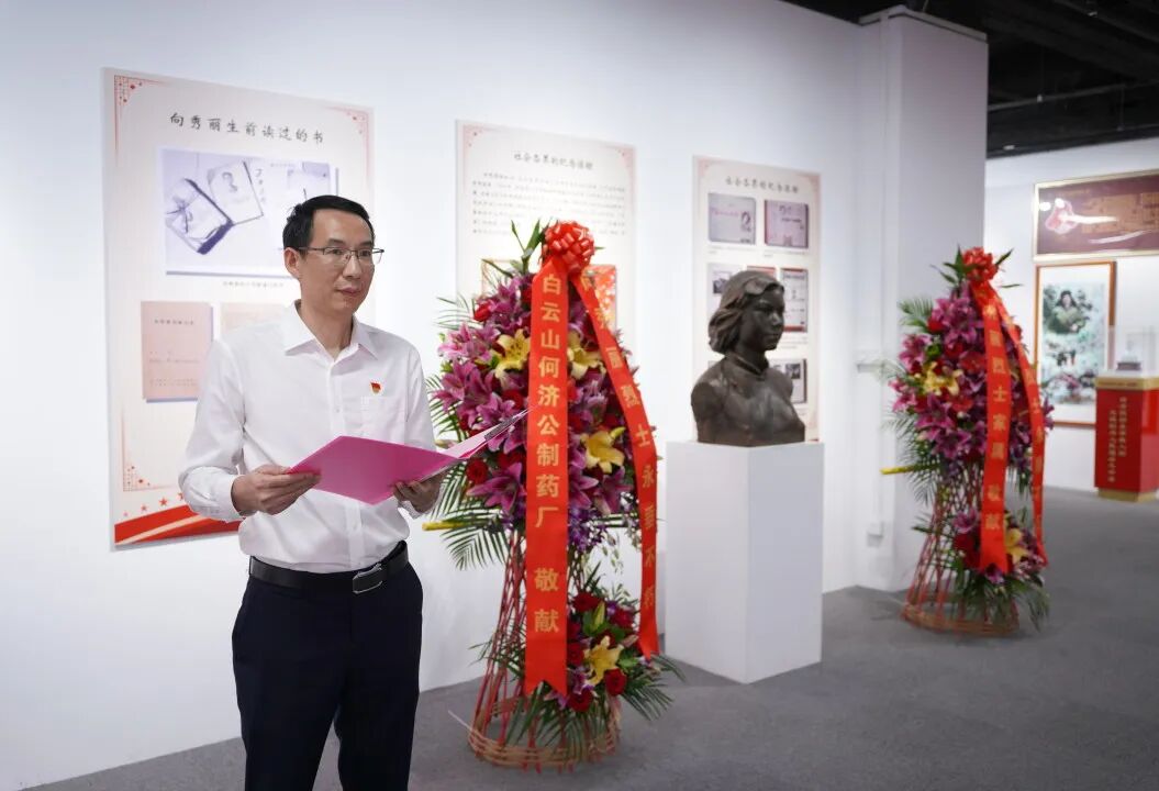 仪式结束后,全体人员参观了向秀丽烈士事迹展,事迹展由崔靖作讲解,讲述奶奶向秀丽的英雄事迹。 随后,全体人员参观了中国人民抗日战争暨世界反法西斯战争胜利80周年系列主题展览——“天地英雄气 千秋尚凛然”开国将军手迹展,该展览展出了众多开国将军的珍贵墨迹,每一幅手迹不仅是书法艺术,更是一段波澜壮阔革命历史的见证,凝聚着将军们对民族解放事业的无限忠诚与坚定信念。 历史川流不息,精神代代相传。每一次对历史的回望,都是对初心的叩问;每一次对英雄的缅怀,都是对使命的重温。白云山何济公将坚持传承红色基因,始终以向秀丽烈士为榜样,从英雄精神中汲取信念的力量、奋斗的勇气、奉献的情怀,把对先烈的缅怀转化为推动企业高质量发展的实际行动,以企业发展实绩致敬英雄,献礼时代!