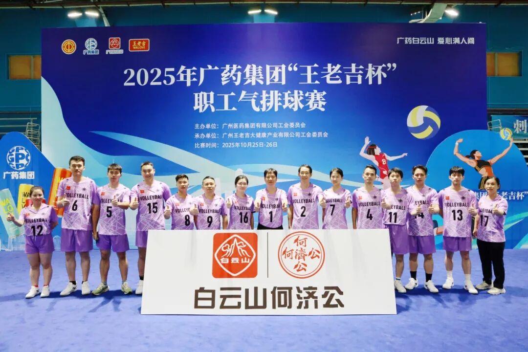 10月25日至26日,广州市海珠区全民健身中心内人声鼎沸、活力涌动——由广药集团工会主办的2025年广药集团“王老吉杯”职工气排球赛在此燃情启幕。来自集团总部及29家司属企业组成的27支代表队、近540名职工运动员齐聚赛场、竞逐荣光。白云山何济公由党委书记、厂长孟君,党委副书记、工会主席廖炎辉等17名员工组成的代表队参赛,历经小组赛的激烈角逐、淘汰赛的强强对决,队伍一路奋勇争先,成功挺进金杯组,并最终斩获第八名的优异成绩。