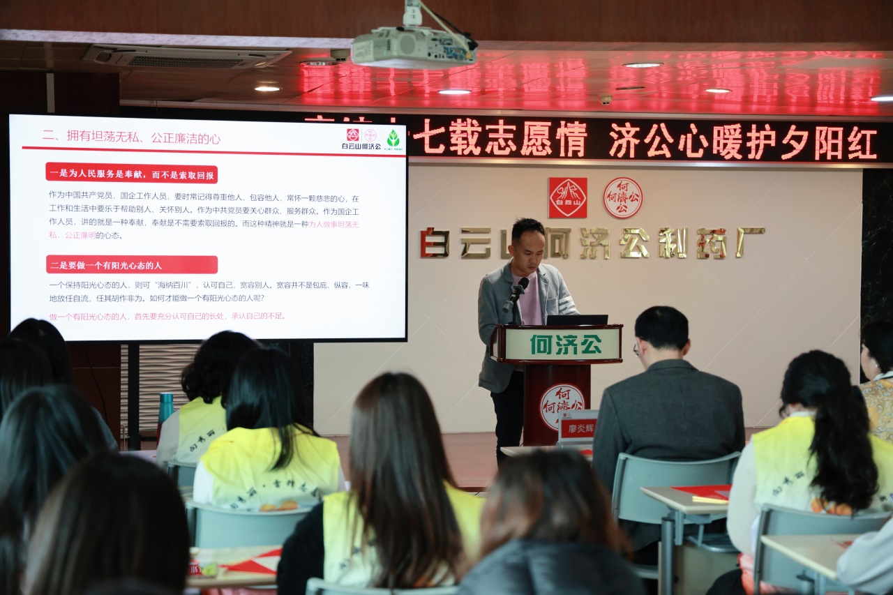 党委副书记、工会主席廖炎辉在活动中充分肯定向秀丽志愿服务队十七年来坚守敬老爱老的志愿初心,高度赞扬了何济公青年志愿者们用实际行动践行国企担当的精神风貌。他表示,一是要牢记初心使命,将廉洁自律的准则内化于心、外化于行,融入日常工作、生活与学习的每一个细节,坚守廉洁底线、涵养清风正气,做忠诚干净担当的新时代国企青年;二是要以此次活动为契机,把敬老助老的传统美德深深镌刻在心中、落实到行动上,以更真诚的态度、更务实的作风、更细致的服务,温暖每一位长者的心田,传承弘扬好向秀丽志愿服务精神,让这份无私奉献的精神在新时代持续赓续、焕发光彩;三是爱岗敬业,立足本职岗位,秉持一马当先劲头,发扬青年敢闯敢试、奋勇争先的精神,主动迎难而上、攻坚克难,敢于突破、勇于创新,在本职岗位上锤炼本领、增长才干,勇于创造优异成绩,彰显新时代何济公青年的责任与风采。
