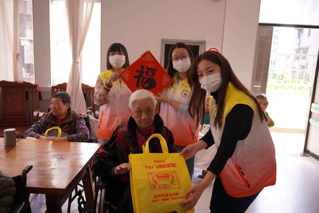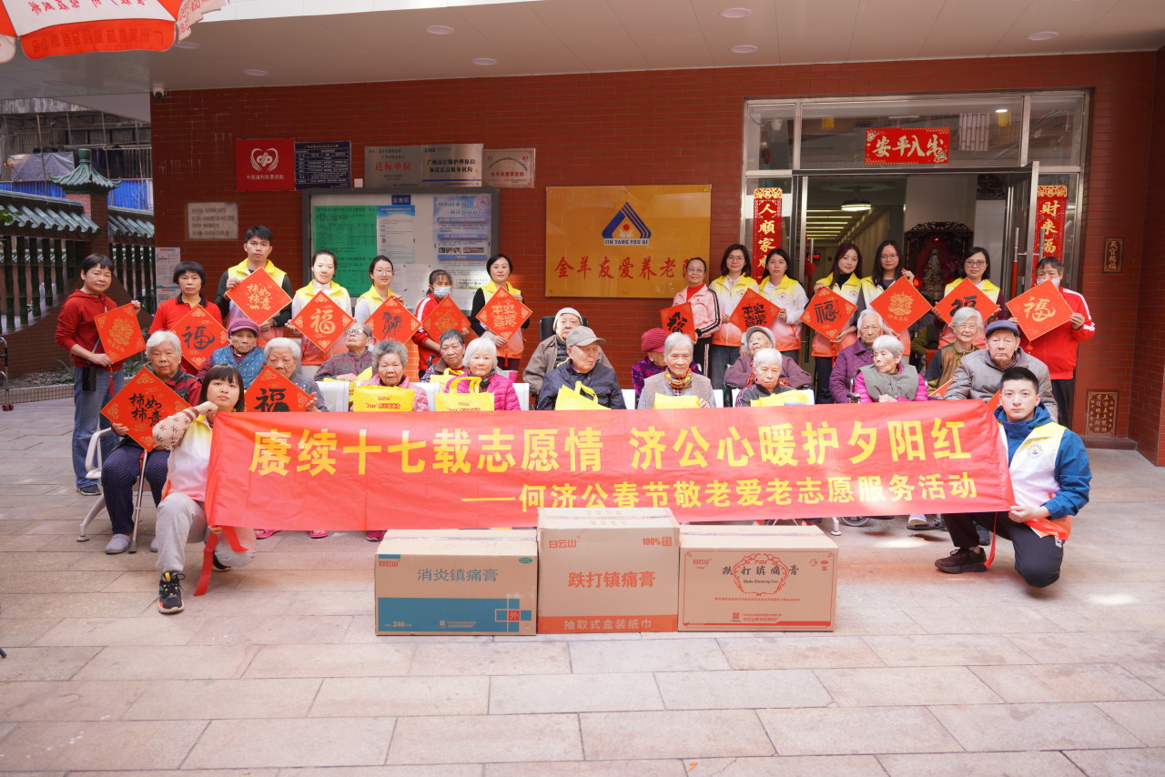 十七载初心如磐,薪火相传;十七载志愿同行,温暖人心。在2026年春节的喜庆氛围悄然浸润羊城之际,白云山何济公团委联合工会高举向秀丽志愿服务队旗帜,坚守十七年不变的暖心约定,延续养老院探望慰问的优良传统,精心组织青年志愿者开展“赓续十七载志愿情 济公心暖护夕阳红”春节敬老爱老志愿服务活动。以实际行动践行红色国企社会责任,让“济公心·秀丽红”党建品牌在冬日里绽放温暖光芒,为长者们送上真挚的关怀与醇厚的新春祝福。