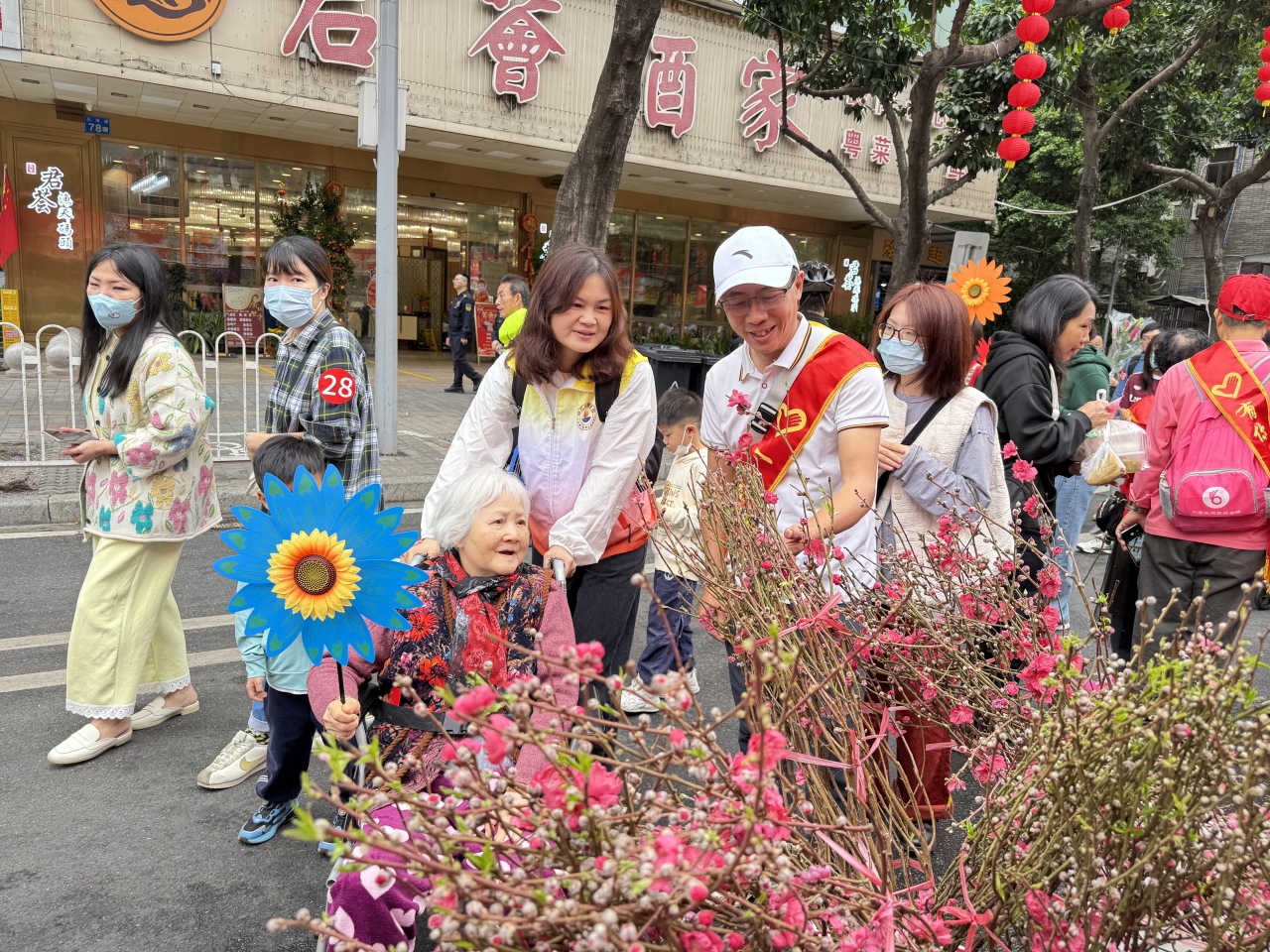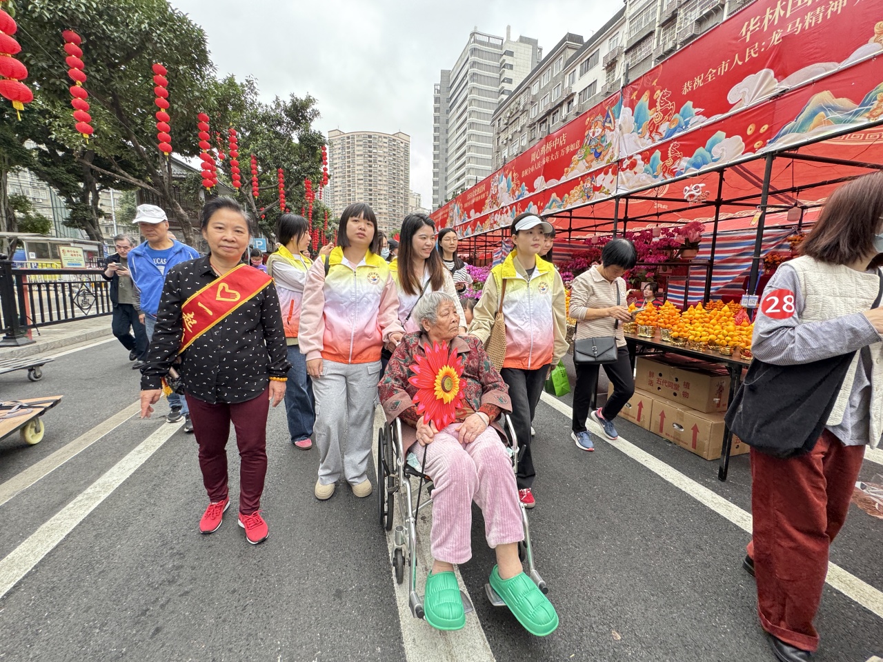 温情不止步,暖意再延续。2月15日,志愿者们与金羊友爱养老院工作人员一起,以3-4名志愿者陪护1名长者的分组模式,全程贴心相伴、推轮椅,陪伴长者挑年花、逛花街,在姹紫嫣红的花卉间,沉浸式感受新春热闹氛围。还化身“摄影小达人”,用镜头定格下长者们的开心瞬间,把这份独属于新春的温馨回忆好好珍藏。