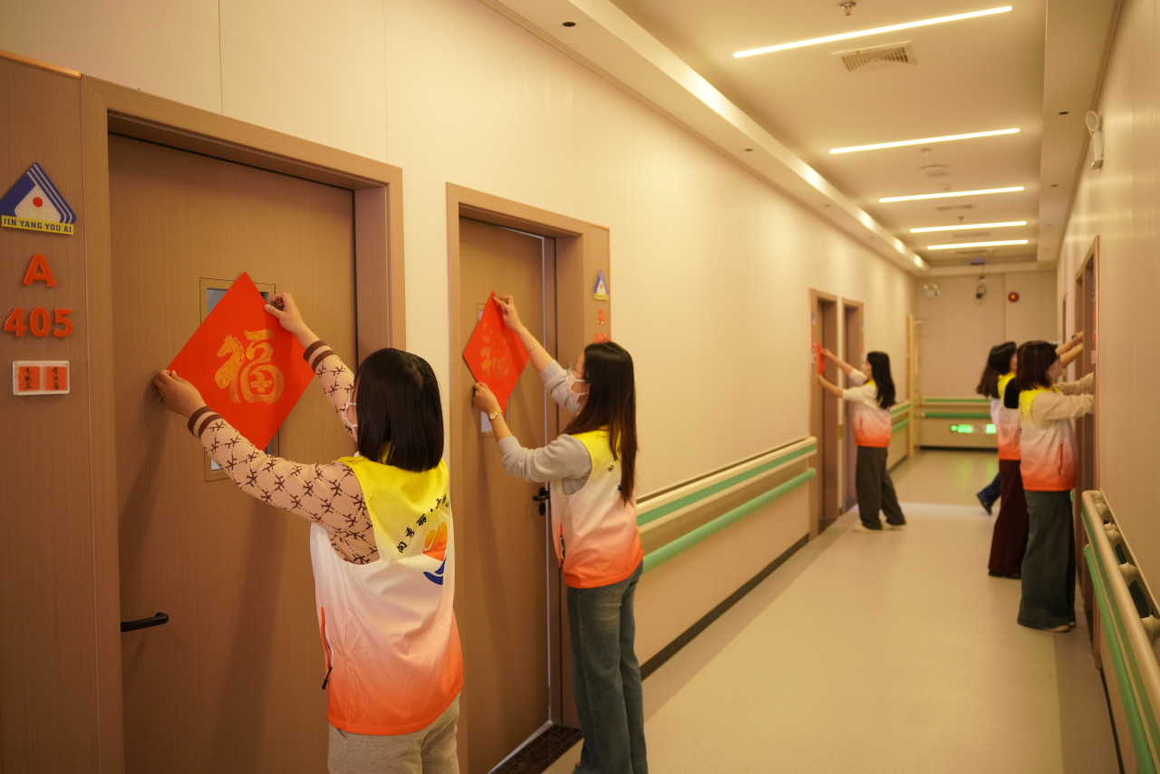 活动现场,志愿者们分工协作,有条不紊地开展服务,有的细心为长者送上药包与福袋,耐心叮嘱药品使用方法;有的手持福字,穿梭在养老院的走廊与房间,将吉祥喜庆贴满每个角落;还有的围在长者身边唠家常、畅谈年俗,一声声亲切的问候、一句句真挚的祝福,让养老院处处洋溢着欢声笑语,也让长者们在新春佳节来临前夕,真切感受到浓浓的年味儿与实实在在的温暖。