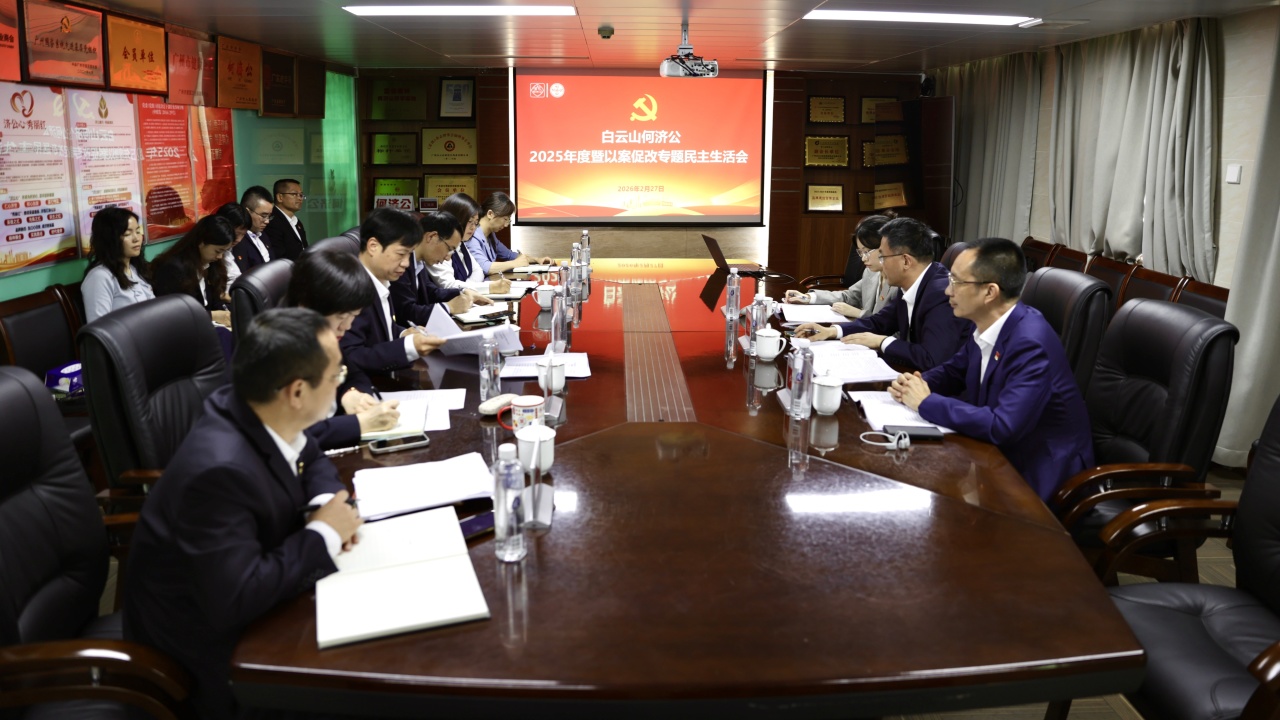 2026年2月27日,白云山何济公党委召开2025年度暨以案促改专题民主生活会。会议紧扣主题,深刻汲取反面典型案例教训,联系班子和个人思想工作实际,深入查摆问题,严肃开展批评和自我批评,明确整改方向和落实举措。广药集团党委委员、副总经理程洪进到会指导。会议由白云山何济公党委书记、厂长孟君主持。广药集团资产运营管理部部长、广药产业运营管理公司董事长卢子建,广药集团党群工作部主管姜若馨以及白云山何济公领导班子成员参会,党员及群众代表共6人列席会议。