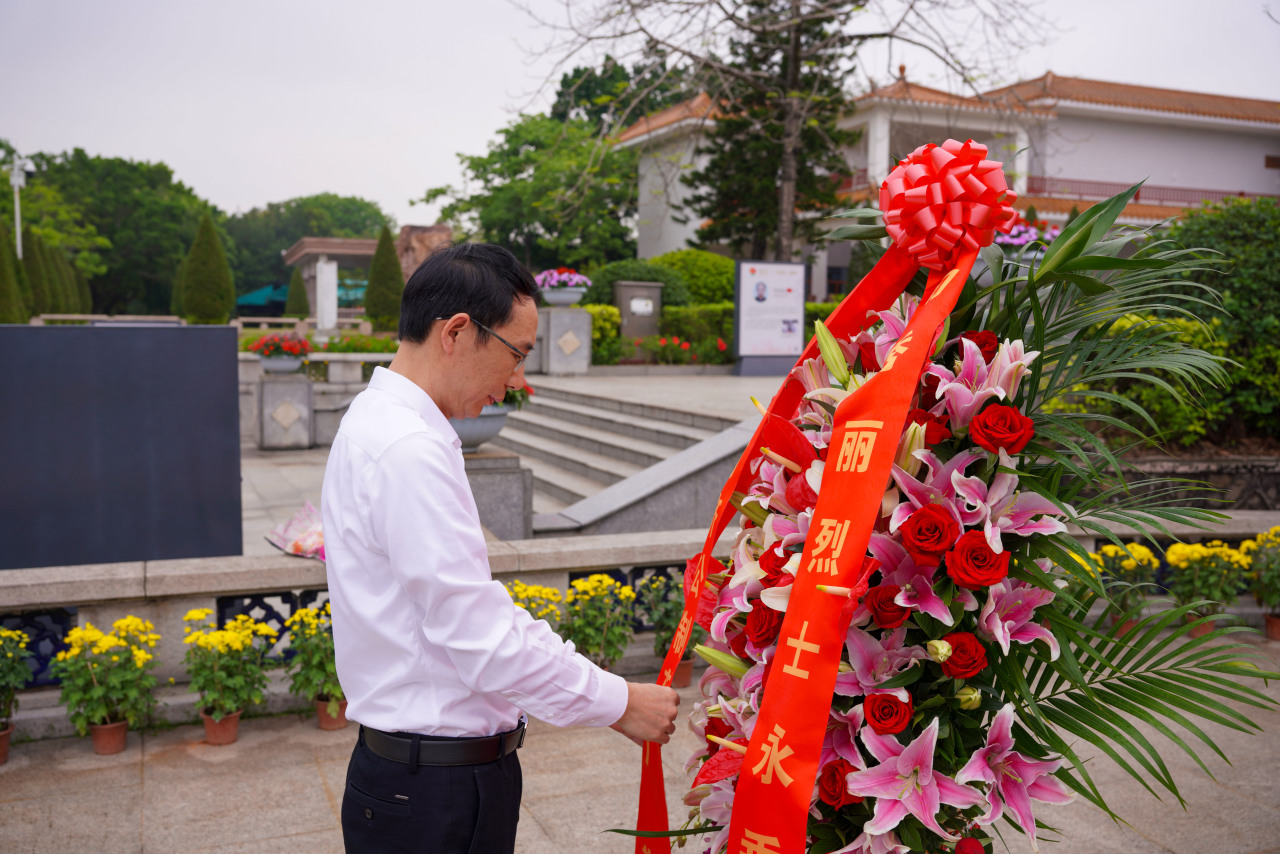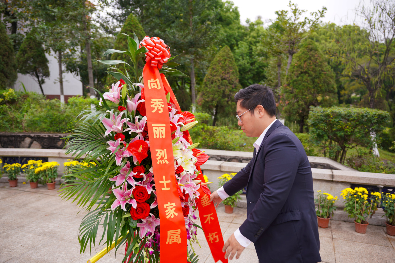 全体人员依次走向向秀丽烈士塑像,俯身献上手中的菊花,并绕行烈士墓一周,驻足瞻仰。菊花素洁,寄托着对英烈的深切缅怀;步履轻缓,丈量着薪火相传的漫漫征途。